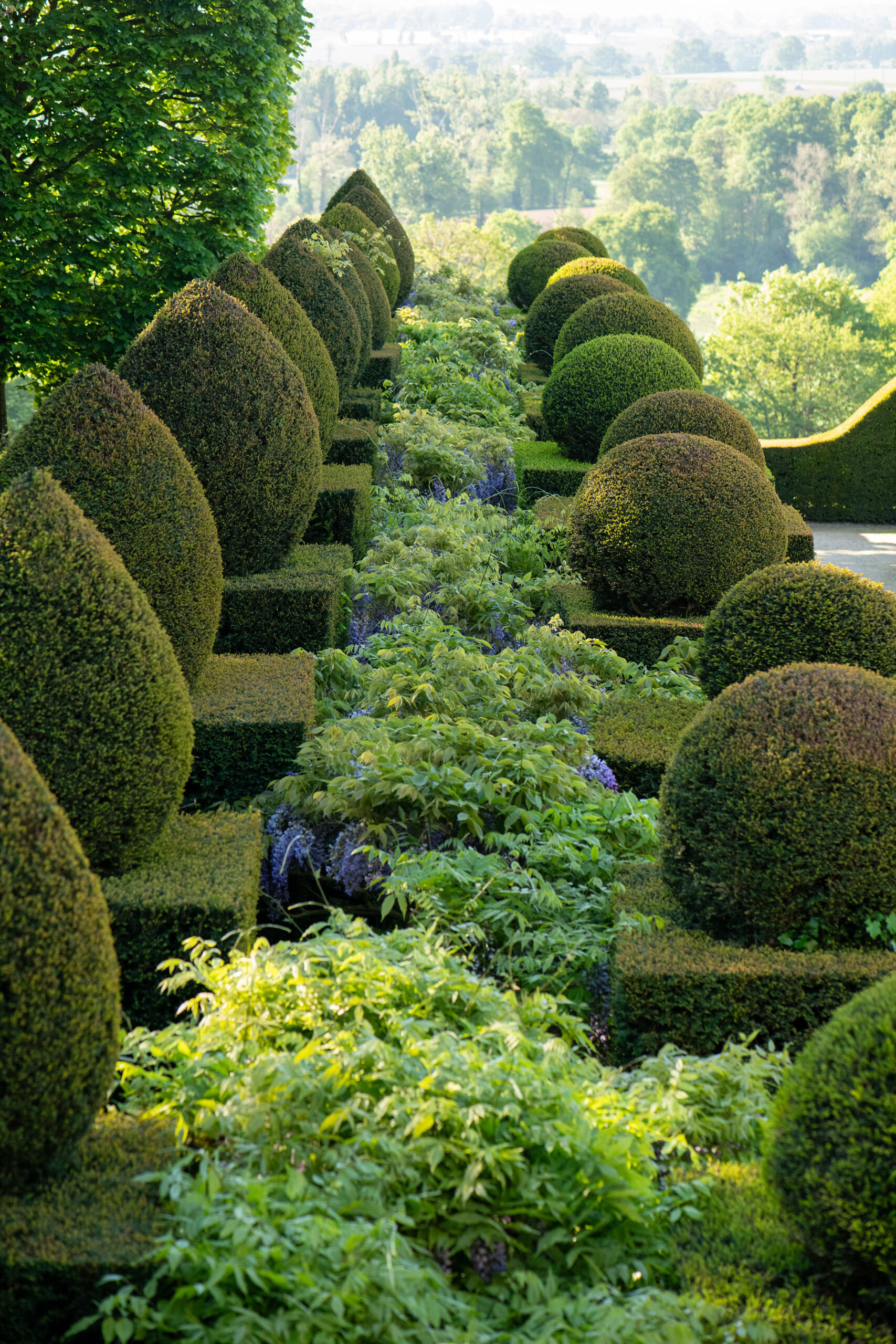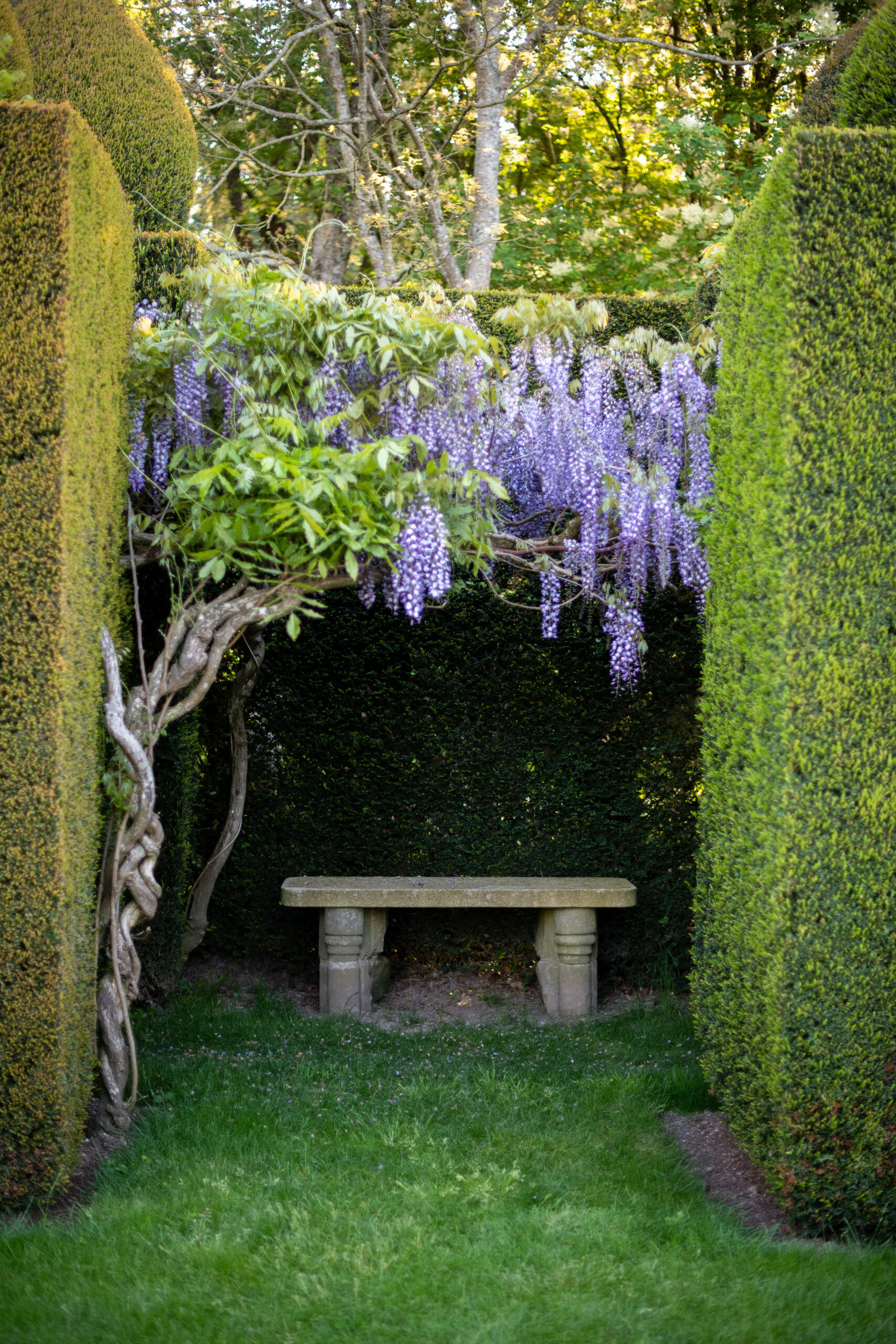 Both historic monuments and works of contemporary art, and designated as “Jardin Remarquable”, the gardens of La Ballue offer a marvellous spectacle at this time of the year. It is the highlight of the flowering season for the famous wisteria avenue. The soft greens of the hornbeam hedges and golden privets play in the light, contrasting with the dark green of the yews. Come and lose yourself in the maze and admire the vast landscape set against the Couesnon valley.